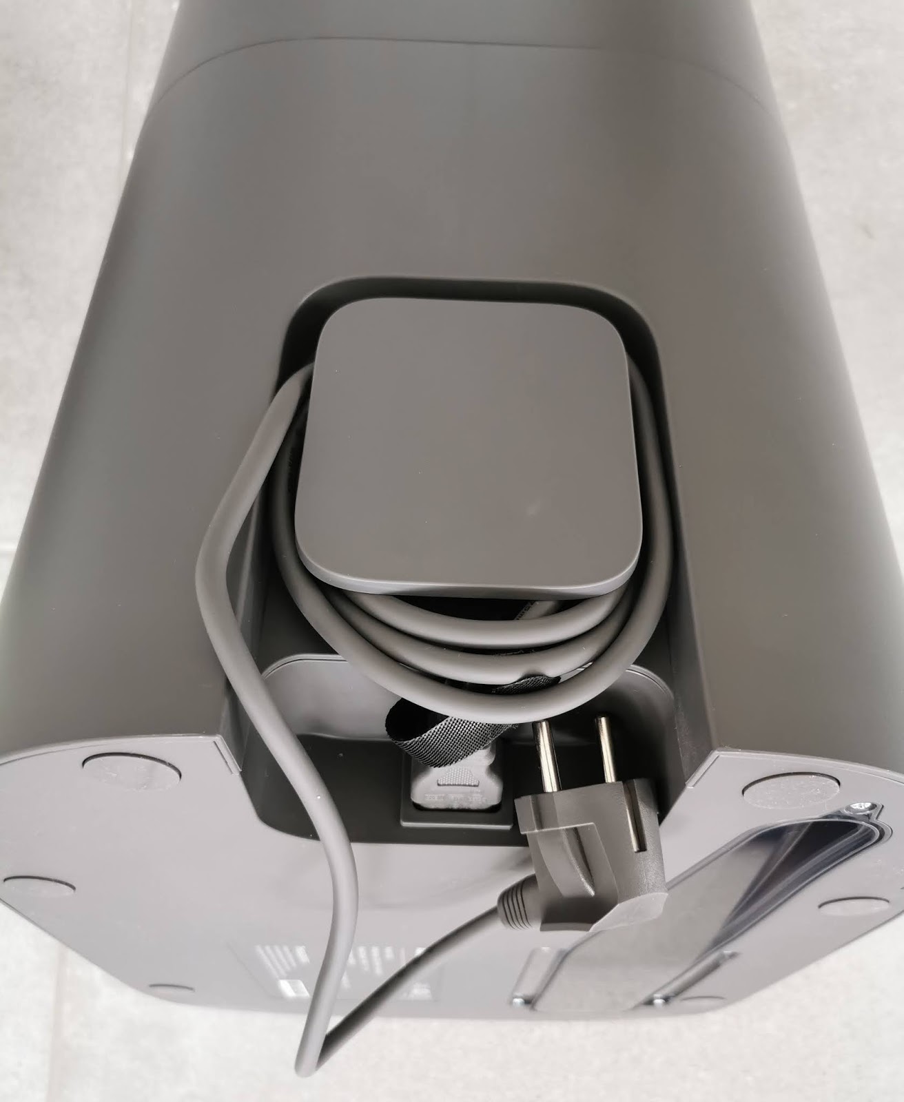 Pour cela, il a fallu clipper la balayette, disposer la base à l'endroit souhaité et la raccorder à une prise électrique. J'apprécie le fait que le cordon peut être enroulé dans la base pour le rendre le plus discret possible.